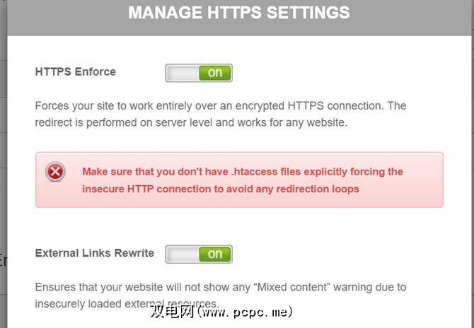 例如,Siteground将“让我们加密"嵌入到cPanel中。在那里,HTTPS设置允许您打开HTTP Enforce和外部链接重写。