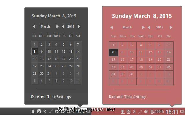 要修改Calendar小程序(通过单击时钟访问)的外观,请查看在“日期小程序"部分中。例如,使用 .datemenu-date-label 可以更改日历小程序顶部的文本的大小,颜色和字体(在此图片中为“ 3月8日,星期日")。