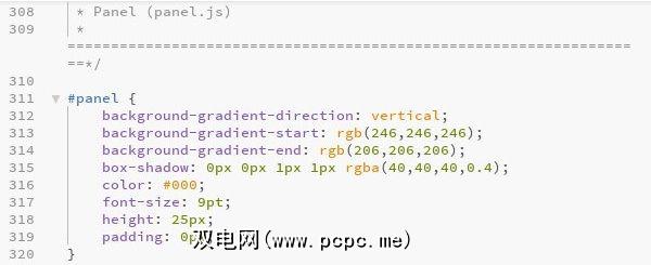 在“ cinnamon.css"文件中,找到以 #panel 开头的行。