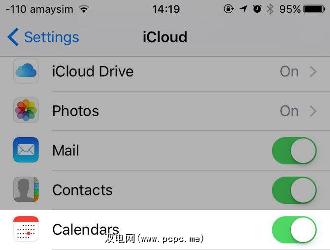 要在iPhone上禁用iCloud日历:转到设置> iCloud ,然后将日历切换为关闭。