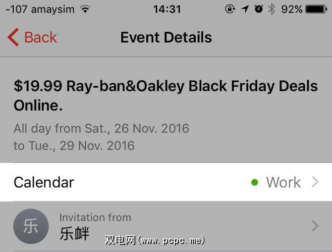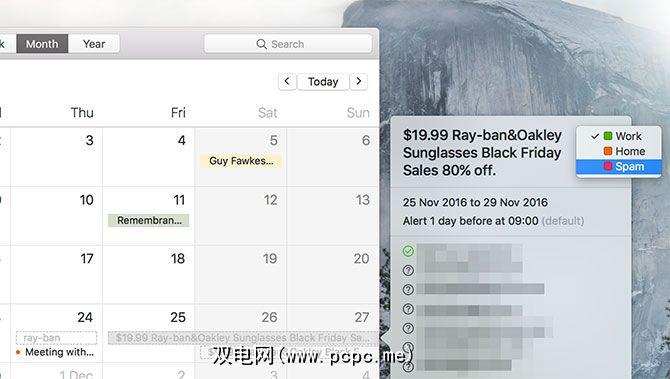 最新一轮的针对iCloud用户的日历垃圾邮件来自中国,试图在2016黑色星期五周末转移假雷朋和奥克利太阳镜。尽管Apple可以限制使用洪水检测功能发出日历邀请的频率,但是如果垃圾邮件发送者创建了很多帐户,则他们可以规避此限制。