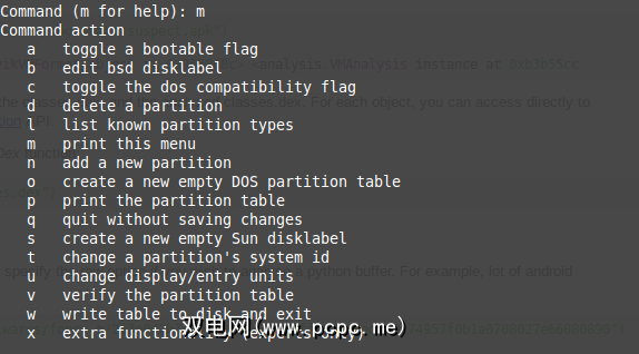 Linux将显示一条简短的指令,以点按m寻求帮助,这将导致以下结果:列出的命令操作: