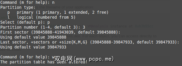 在此之后,系统将提示您指出新分区的第一个柱面和最后一个柱面。这可能会造成混淆,尤其是在您不确定需要多少个气缸的情况下;幸运的是,您还可以输入所需分区的大小,例如,对于2000 MB(2 GB)分区,为+ 2000M。在某些版本的Linux中,显示默认值。点击Enter接受这些设置并节省时间。