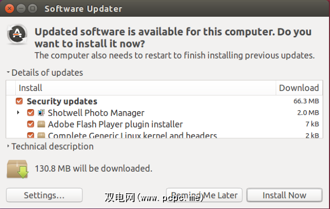 启动软件更新程序后,它将把更新程序分解为安全更新和其他更新。绝对的最低要求应该是确保所有安全更新始终保持最新。其他更新将包括重要的错误修复和Ubuntu基本更新(如果可用)。