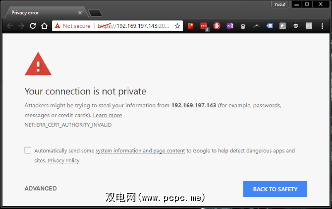 如果您访问的网站不安全,确保不要输入任何个人信息,密码或付款细节。
