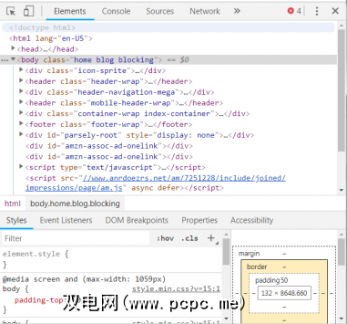 现代浏览器允许我们提供有关此过程的一些详细信息。在Windows上的Google Chrome浏览器中,您可以按 Ctrl + Shift + I 或右键单击并选择检查。然后,窗口将显示一个类似于以下内容的屏幕。