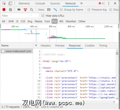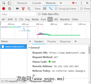 选项卡的选项卡式列表位于窗口顶部。现在值得关注的是网络标签。这将提供有关HTTP流量的详细信息,如下所示。