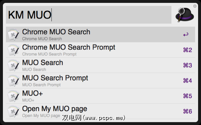 该工作流程还允许执行Keyboard Maestro宏没有分配键盘快捷键的键。工作流程开发人员Ian Sinnott解释了其工作流程的其他一些用途。