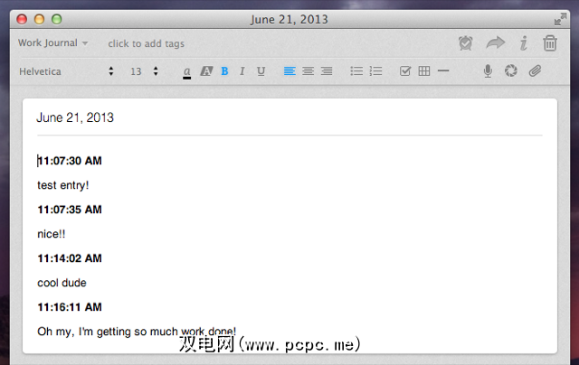 Evernote是出色的应用程序和服务,但是打开和添加便笺可能会很麻烦。该工作流程让您全天工作,可以保留带有日期和时间戳的日志。您在“ Alfred"窗口中键入条目,您的内容将被记录到该特定日期的专用注释中。所有日记帐分录也都保存在工作流程自动创建的指定文件夹中。