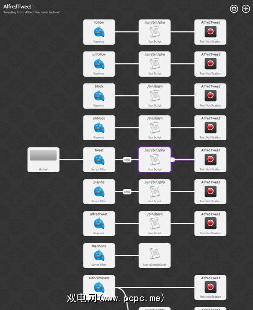 除了发布推文之外,此工作流程还可以在内部显示您当前Twitter提及的列表。 Alfred窗口。它还使Rdio.com用户可以将当前正在播放的歌曲发布到其Twitter流中。该工作流包含13个不同的关键字命令,这些命令将使您的Twitter帐户触手可及。