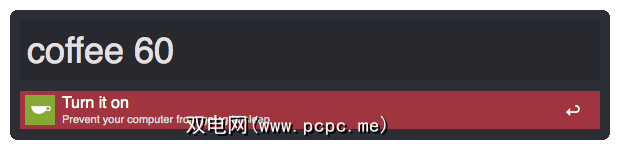 我偶尔会使用一个名为Caffeine的小应用程序来保持计算机唤醒,但是有了CoffeeCoffee工作流程,我却没有启动咖啡因以使我的计算机保持苏醒。试试看,您会喜欢的。关键字是“ coffee",后跟要使Mac保持清醒状态的分钟数。