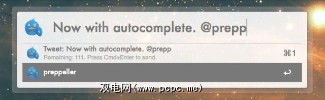 使用David的Mavericks中的通知发送推文相当容易弗格森的AlfredTweet 2甚至更快。您将需要按照网页上的说明进行设置,但这非常值得。