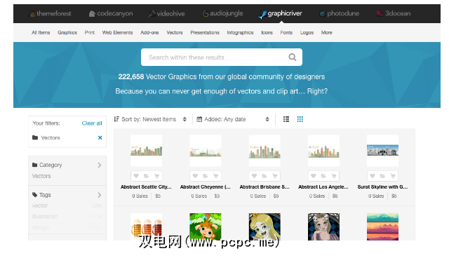 GraphicRiver仅提供最高质量的图形,但是它们的库要小得多,只有250,000张图像。幸运的是,您无需订阅使用它们的每月套餐。