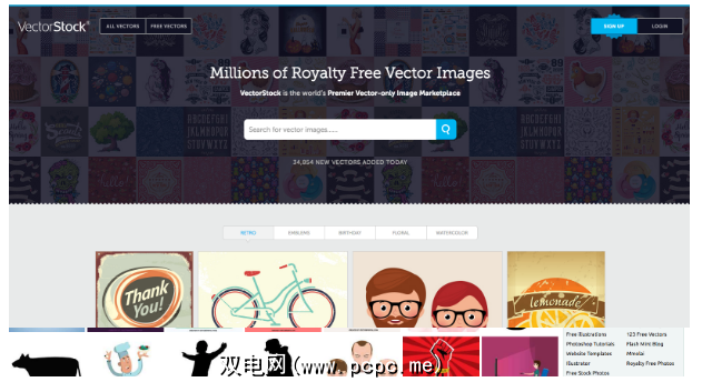 为了与其他所有库存图片网站区分开来,RetroVectors仅提供免费和优质(通常为每套$ 2)的图片,让您回味无穷,将您带离维多利亚时代直到1980年代。