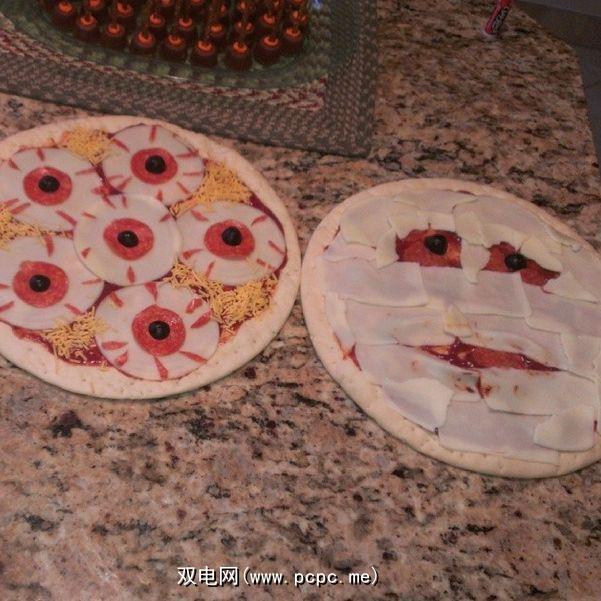 怪异的比萨是如此简单,我我有些失望,我还没想到。您所需要的只是薄而长的奶酪片,然后将它们放在披萨上,使木乃伊变得面目全非,并为眼睛添加橄榄。瞧!木乃伊比萨!怪异的眼睛比萨似乎结合了萨拉米香肠,意大利辣香肠和橄榄来制作“眼睛",但我不确定。但是,嘿,无论如何它应该起作用,对吗?