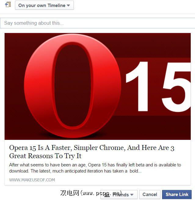 然后,您可以编辑帖子,选择在时间轴或您管理的页面上分享,然后发布只是对您的朋友还是对公众。如果您在Facebook上的分享频率高于其他社交媒体网站,那么Facebook共享按钮扩展名适合您。