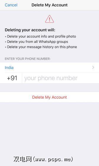 如果出于某种原因想要完全删除您的WhatsApp帐户,请转到设置>帐户>删除我的帐户以开始使用。如果您改变主意,可以稍后再启动新帐户,但是您当前帐户的聊天记录将永远消失。消息的云备份也将消失。另外,您将从朋友的组和联系人列表中消失。