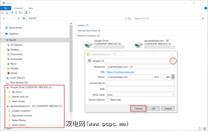 如果您需要一次管理多个云存储服务,则在不同接口之间进行切换会阻碍您的工作流程。 Mountain Duck是一个漂亮的应用程序,可让您在文件资源管理器中将服务器和云存储作为本地卷挂载。