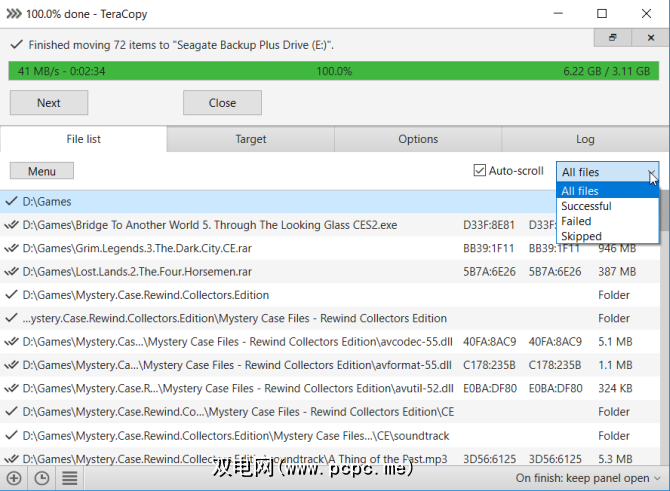 TeraCopy是一款用于移动和复制文件的实用程序。该应用程序实现了对复制过程的动态缓冲区调整。它创建具有多个文件操作的待处理队列,并同时执行它们。如果出现任何错误,它只会跳过损坏的文件,而不会终止整个传输过程。