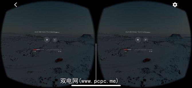 开始播放视频后,只需选择屏幕右下角的Cardboard图标即可。