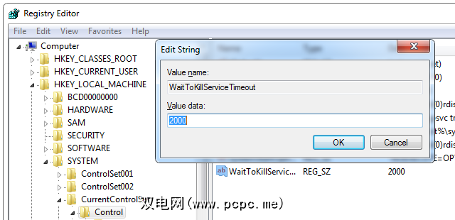 要打开注册表编辑器,请单击 WINDOWS + R ,然后键入 regedit ,然后按 Enter 。在注册表编辑器中,浏览到 HKEY_LOCAL_MACHINE \ SYSTEM \ CurrentControlSet \ Control 并双击右侧的字符串 WaitToKillServiceTimeout 。将值从12000更改为 2000 ,然后单击确定。现在,服务将在2秒而不是12秒后关闭。