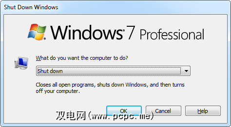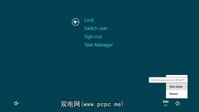 Windows最受欢迎的键盘快捷键, CTRL + ALT + DEL ,也可以完成此任务。无论您使用的是Windows 7还是8,请注意右下角的电源按钮,然后关闭电源。