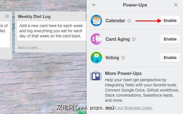 现在,一旦您指定了到期日,如何鸟瞰所有即将到来的截止日期?这就是Trello的日历功能可以为您提供帮助的地方。您需要逐块激活它,这是执行此操作的方法。