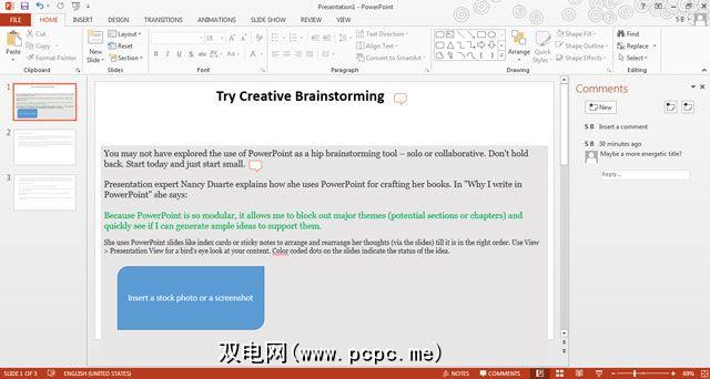 您可能没有意识到PowerPoint可以是时髦的头脑风暴工具,无论是单独的还是协作的。不要退缩。从今天开始,但从小做起。