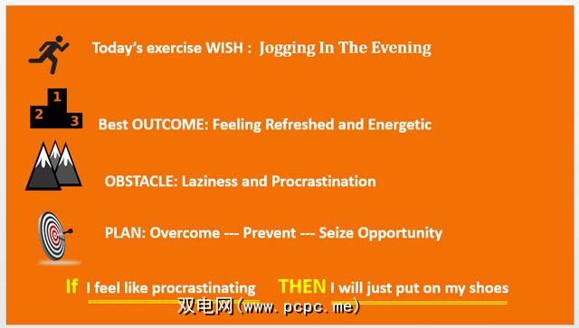 Dr。 Gabriele Oettingen在心理对比方面的工作促使我尝试在PowerPoint幻灯片上尝试她的愿望–结果–障碍–计划理论。 WOOP有一个适用于Android和iOS的应用程序,但是PowerPoint有更多的空间来可视化地设计自己的愿望,期望的结果,未来的障碍以及我将用来克服它的计划。