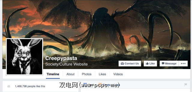 有超过一百万的赞,Creepypasta [不再可用]并不晦涩。每天都有很多人与Creepypasta互动,因为他们会定期使用令人毛骨悚然的图片,故事和视频更新页面。人们似乎喜欢他们的内容。