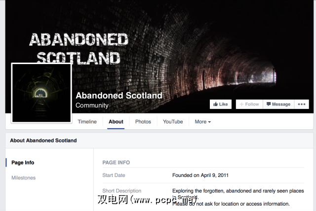 Facebook页面Urbex [不再可用]乍一看似乎并不奇怪,但就像被遗弃的苏格兰一样,该页面探索了被遗忘的地方-废弃的地方有些令人毛骨悚然。该页面有大约35,000个点赞,其中包含来自美国废弃场所的照片和视频。