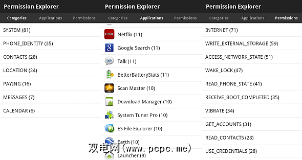 最近打开的来源的权限浏览器允许用户分析授予每个应用程序的各种权限。我首先放置此应用程序,是因为它允许用户查看可能违反隐私的应用程序。