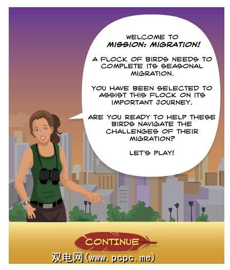 任务迁移游戏暴露了人类活动对鸟类迁徙的威胁。该游戏还试图强调积极的环境选择对成功鸟类迁徙的作用。