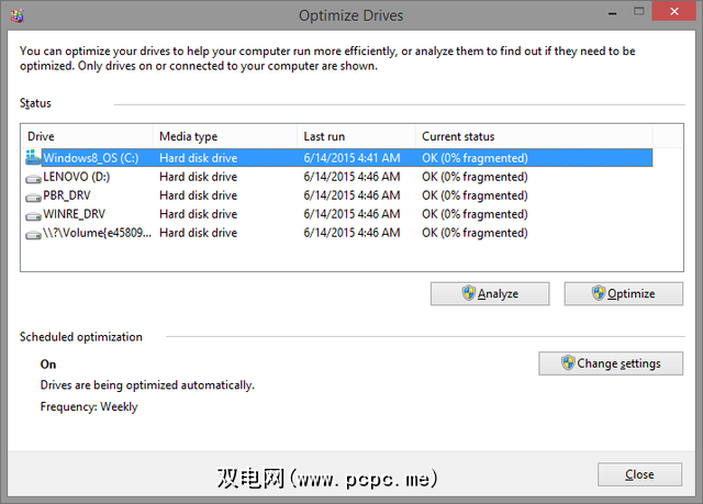 您也不需要第三方磁盘碎片整理程序,尤其是在您需要运行Windows 7或更高版本。默认的磁盘碎片整理工具可以正常工作。此外,所有7版以上的Windows操作系统都会自动进行碎片整理,因此您甚至不必担心。