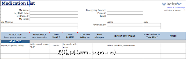 保持丸剂,剂量的跟踪而且时机很难,尤其是当您服用多种药物时。通过此电子表格,您可以绘制服用特定药物的时间,数量以及原因的图表。方便与您的卫生专业人员会面。