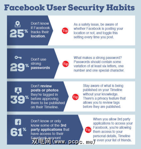 显然,所有用户中有一半从未使用过“查看方式"功能来确定哪些帖子是公开的,有39%的用户在允许其贴在墙上之前不审阅已标记过的帖子,而61%的用户则没有还不知道第三方应用程序可以访问其帐户。