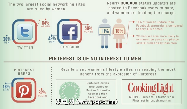 较高的女性用户群这一趋势已在所有社交媒体网络中得到体现。例如,Twitter用户中有64%是女性,而Pinterest中则有82%是女性。