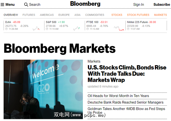 彭博市场是另一种强大的金融新闻资源,它以引人入胜的格式提供了大量信息。在首页上,您会发现当前的市场趋势以及头条新闻和故事。