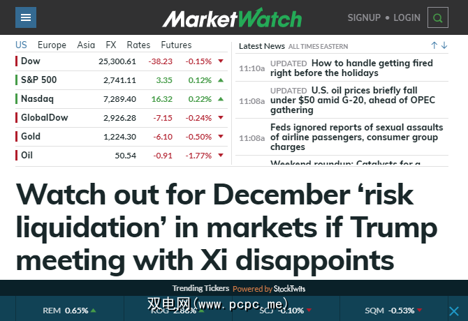 MarketWatch是《华尔街日报》(Wall Street Journal)的出版物,旨在迎合那些深入日常市场的人。在页面顶部,您会找到一个股票代码,可用于监视密钥交换,检查股票价格以及浏览最新新闻。