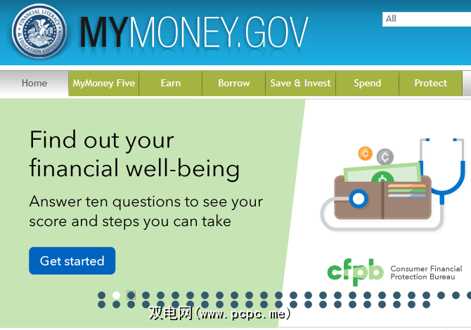 MyMoney是美国政府网站,旨在帮助初学者学习金融基础知识。网站传授的五项金钱原则是收入,借贷,保存和投资,支出和保护。