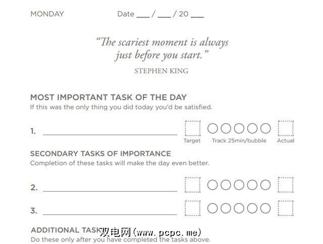要获得更深的成就感,可以购买他们的 Productivity Planner 。或按照模板中列出的概念拼凑自己的一个。