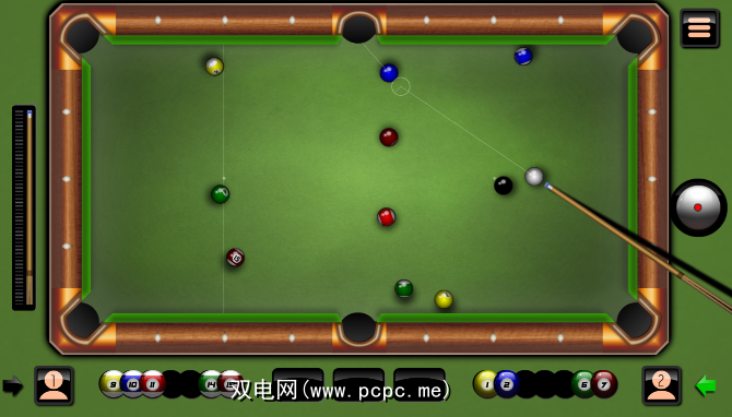 首先,您必须使用准则指示器来排列镜头。然后,将鼠标移至强度仪,然后将操纵杆拉回所需的力量。这是与朋友在线玩的最佳台球游戏免费游戏之一。