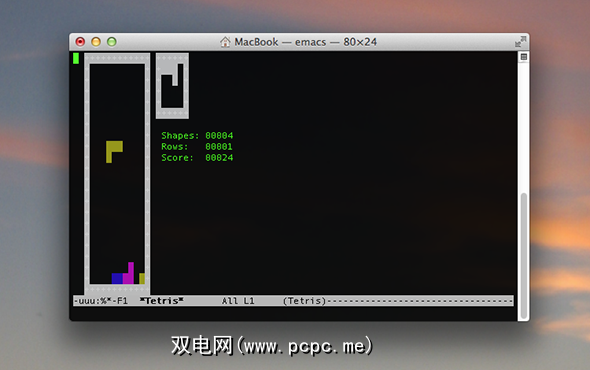 打开终端,然后通过键入 emacs打开Emacs文本编辑器并点击“输入"。同时快速按下“ Esc "和“ X ",您将可以输入命令。输入俄罗斯方块,您将立即开始游戏: