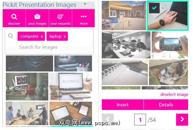 如果您创建的小册子,学校论文或演示文稿需要图像或可以通过使用它们进行改进,则Picket Presentation Images效果很好。您可以弹出打开外接程序窗口并搜索所需内容,也可以在文档中选择文本,然后从上下文菜单中选择外接程序。