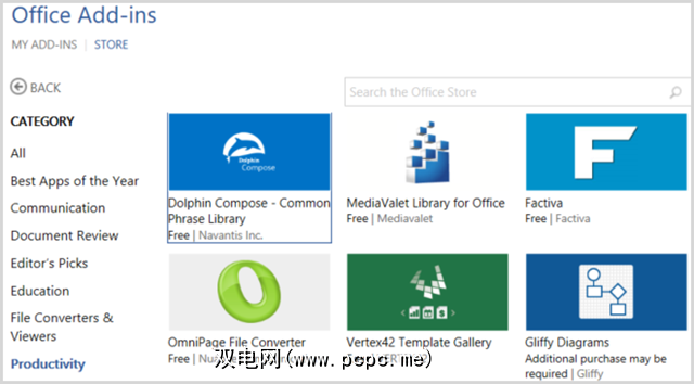 Microsoft Word 2016具有易于访问的存储,其中包括适用于两个Windows的各种分类加载项和Mac。打开文档后,选择插入标签,然后点击存储。 Office加载项商店将在新窗口中弹出并打开,您可以在其中按类别浏览或搜索特定的加载项。相反,您可以在线访问Office Store,然后从顶部导航中选择加载项。
