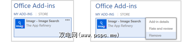 如果您不再需要或想要安装的加载项,则删除它很简单。首先,从您的插入标签中选择我的加载项按钮。然后,单击外接程序右上角的更多(三点)选项。在确认弹出窗口中选择删除,然后再次删除。
