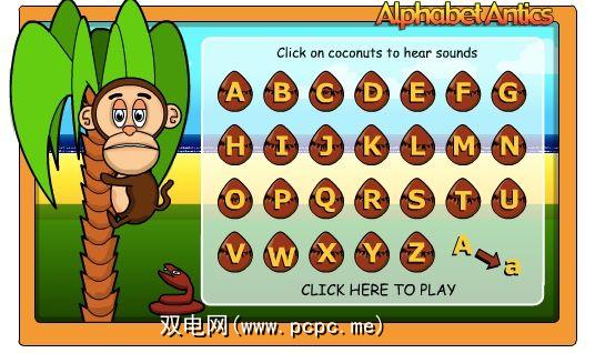 Alphabet Antics 是来自英国的那些快速休闲游戏之一理事会,您可以安排5分钟的空闲时间。交互式字母游戏是关于需要椰子帮助的猴子。