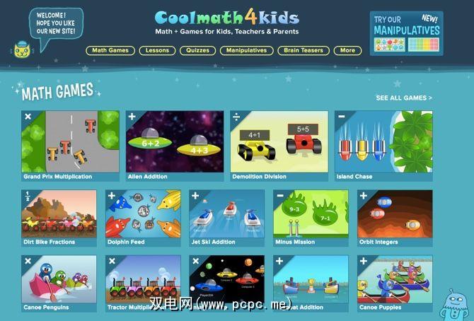 CoolMath4Kids是针对不同年龄段的与数学相关的三项网站的一部分。 CoolMath提供有关代数,微积分等主题的游戏。 Coolmath-Games提供了有趣的方式来开发各种类型的互动游戏的逻辑。然后,我们有了这个网站,该网站自称为“数学游戏的游乐园"。