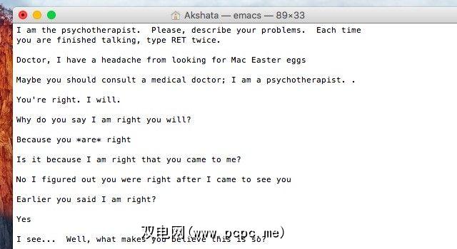 如果您想笑一点,请尝试与OS X上的虚拟心理治疗师进行对话。要开始会话,请打开Terminal应用程序并按照以下步骤序列进行操作: