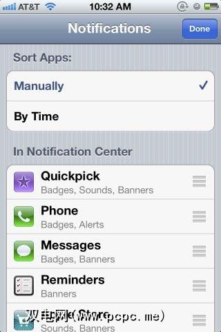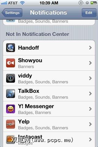 在设置中,您还可以点击“通知"来管理各个应用程序所需的通知类型。在此处,您可以点击 Edit 按钮以在通知中心中重新排列应用通知的顺序。